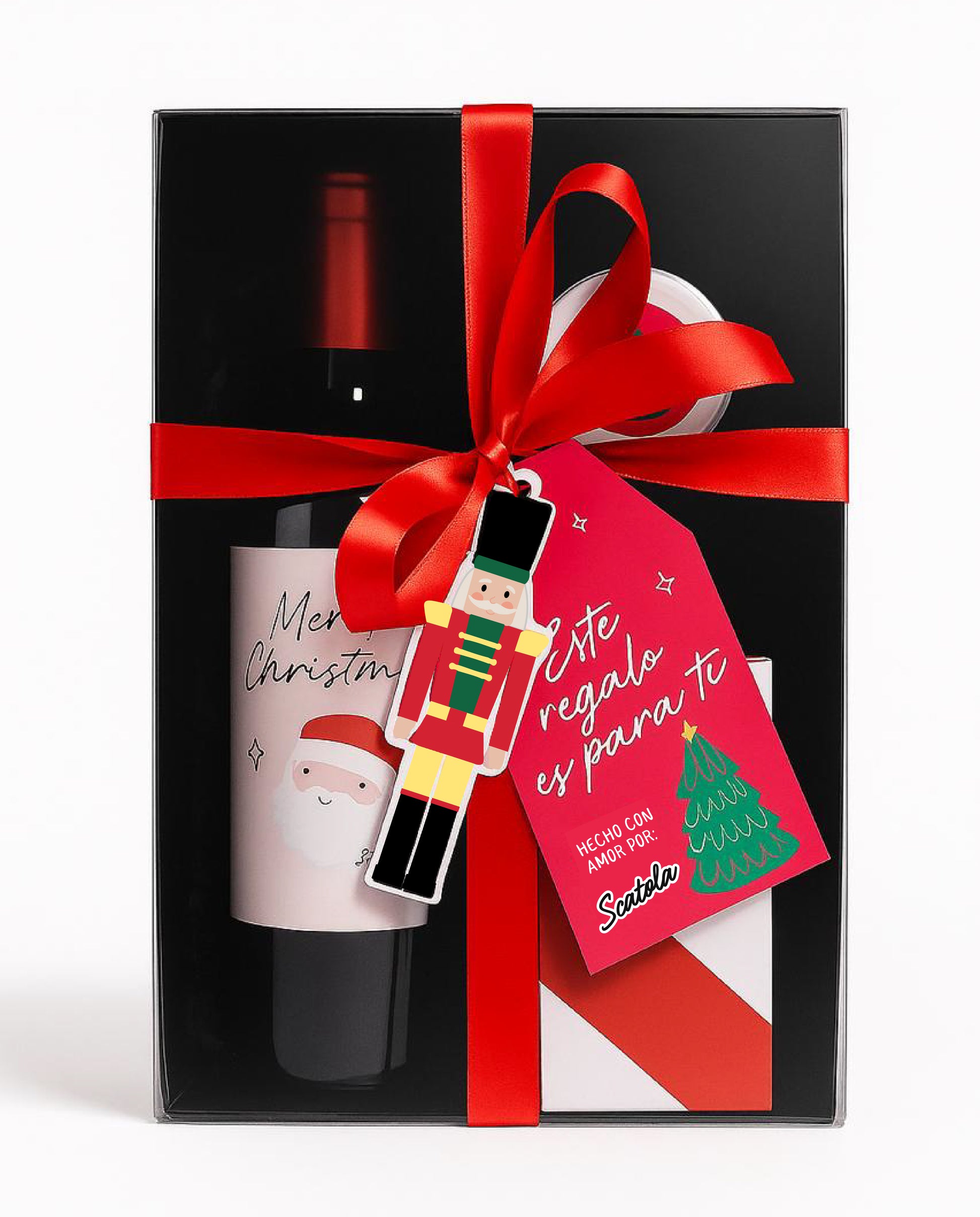 -Botella de vino tinto Selección 750 ml. con etiqueta navideña.